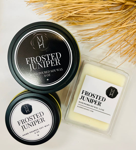 Experience the intricate harmony of Frosted Juniper, where crisp evergreens meet vibrant fruits. The scent opens with refreshing camphor, airy ozone, and a touch of citrus, creating a cooling winter atmosphere. At its heart, rich red berry notes balance the robust pine and juniper, while eucalyptus, fir needle, and cedar leaf essential oils deepen the fresh evergreen character. This expertly blended fragrance evokes a serene, natural winter woodland.